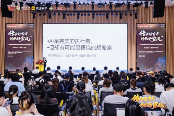 美团医药健康品类运营专家张士成从“科技赋能”角度出发,阐述平台在连接传统医药与现代家庭中发挥的作用。美团买药作为健康服务平台,致力于让传统医药智慧更便捷地触达用户,并希望为公益赛事注入科技与速度的实践力量。