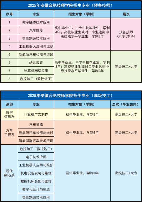 预备技师班学生可参加对口高考,考入本科院校(如安徽建筑大学、合肥学院)或高职院校(如安徽职业技术学院);