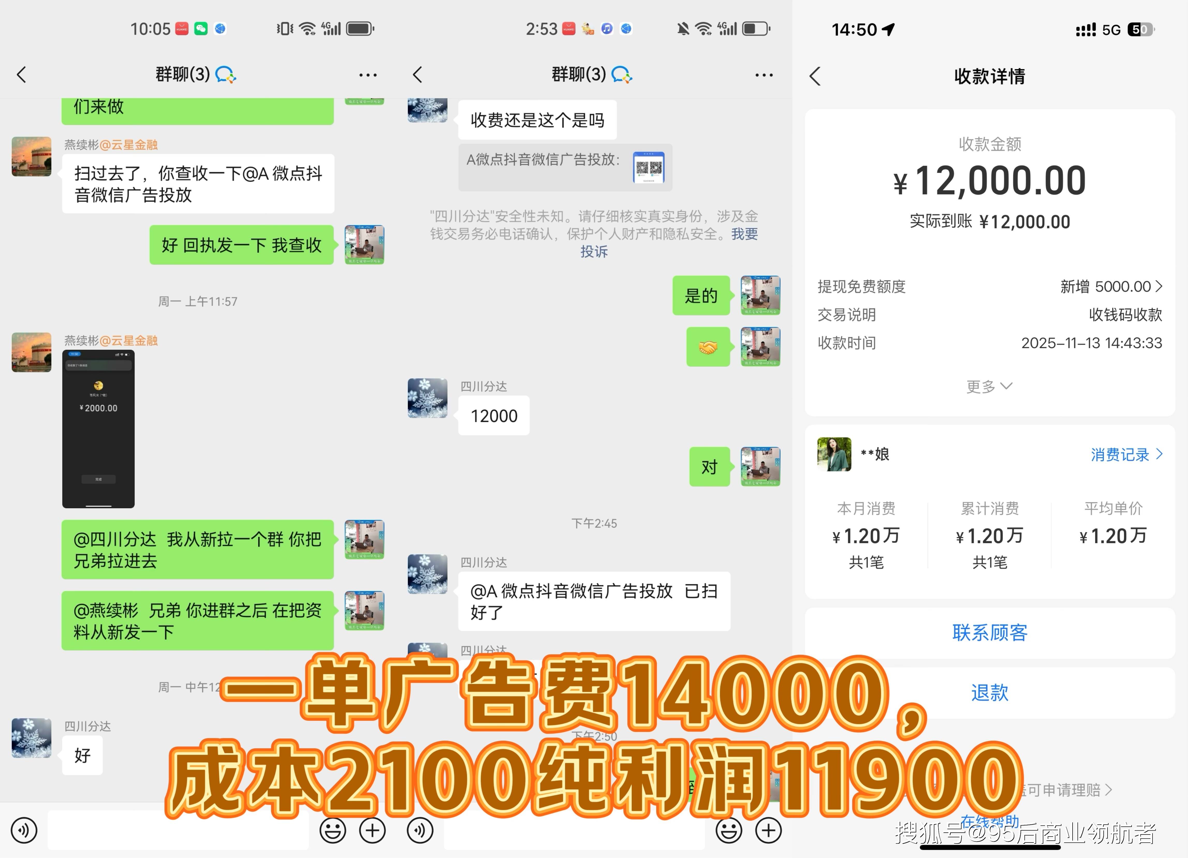 第一,广告差价:我们跟平台直接对接的,拿到最低广告最低价格,按照市场溢价 卖给商家,中间的差价就是咱们的利润