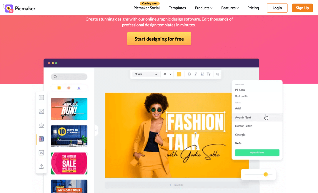 平面广告设计软件Picmaker是一款在线万多个独特的平面广告设计模板库,可在几分钟内创建出适合平面广告设计的模板库。