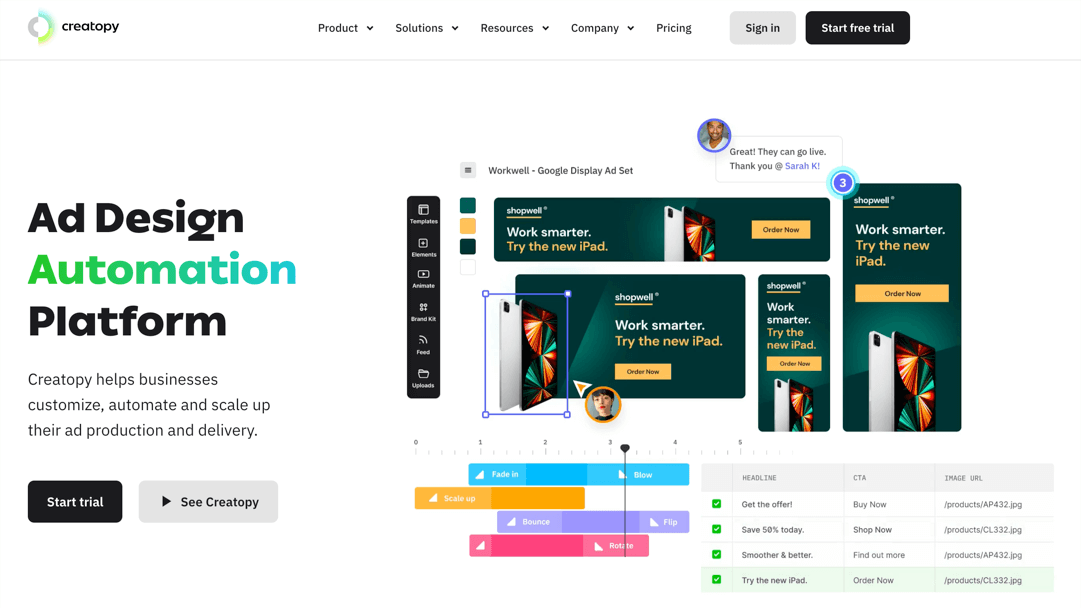 平面广告设计软件Creatopy可以制作横幅广告、动画图像和视频在线广告。操作非常直观流畅,初学者可以快速上手。此外,它还提供了大量的平面广告设计模板库,可以帮助设计师激发设计创意,快速制作高质量的HTML广告和横幅。