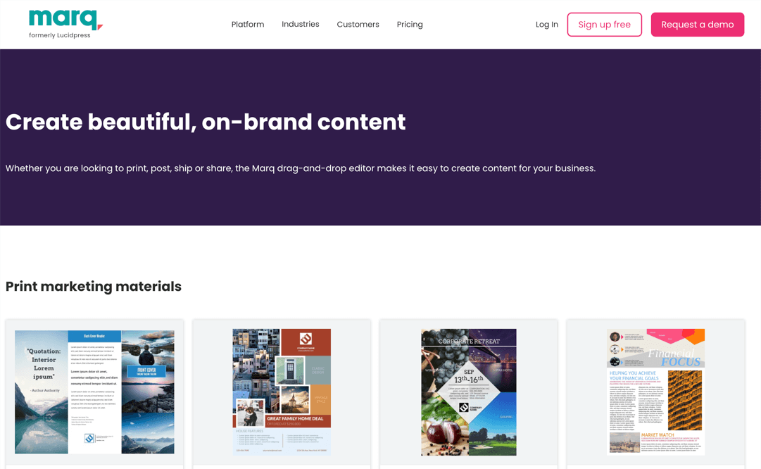 平面广告设计软件Marq是一种专门为创建精致的品牌内容而设计的软件。通过Marq的拖放式编辑器,您可以轻松地完成品牌内容的打印、发布和共享,以满足您的各种平面广告设计和宣传需求。